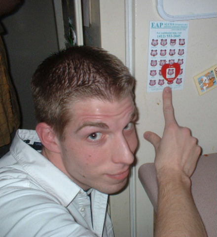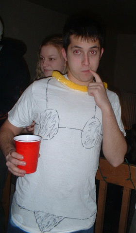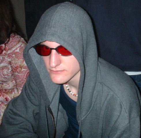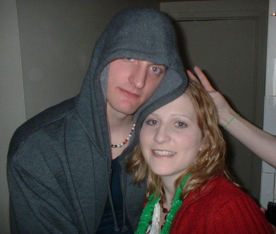 I insisted on putting E's hood up all night, but then he was mistaken as the Unibomber :
