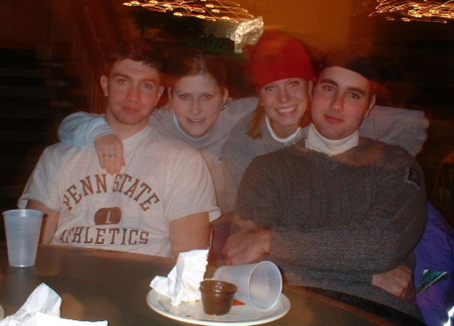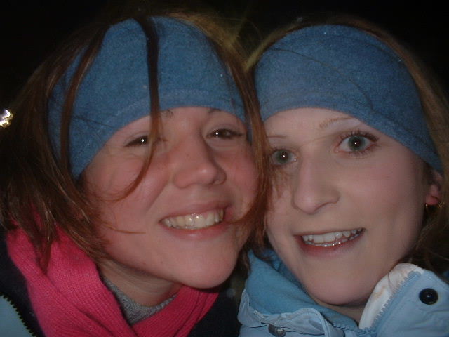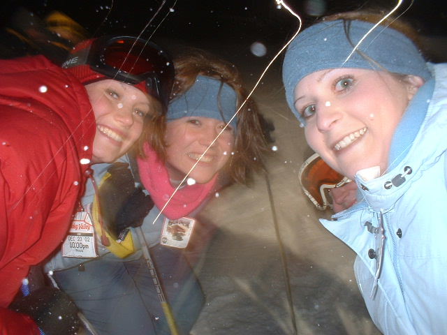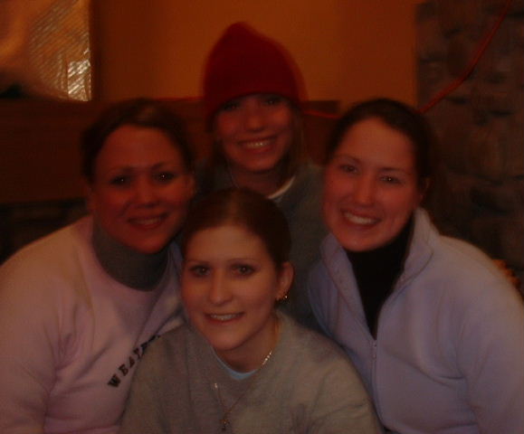 After conquering the bunny slopes and some near-death experiences on Mardi Gras, we all skiied to the lodge to eat...here's us girls by the fire: