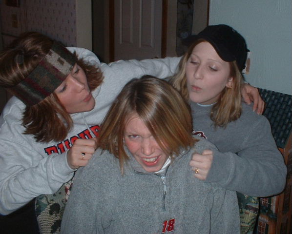 I really don't recall why we did this, but apparently Leslie didn't like for us blowing in her ears: