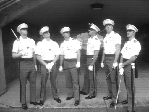 Ziga and some of his buddies from his company got together before the parade and took some very wonderful photos replicating the "old corps" pictures that cadets used to take back in the days when we had some style. This is a traditional "sabers in the center" pose.