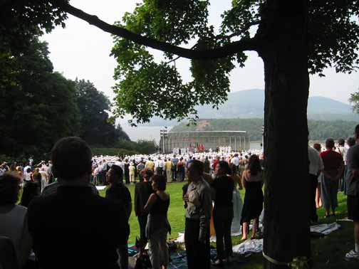 We spent the night in the city at the Belvedere Hotel, then dragged ourselves out of bed to make it upstate in time for my obscenely early hair appointment. That left us a nice morning to lounge around my place before trooping over to West Point for the Ring Ceremony. This is how it looked - parents and dates scattered everywhere, crowded around the cadets standing in formation at Trophy Point.