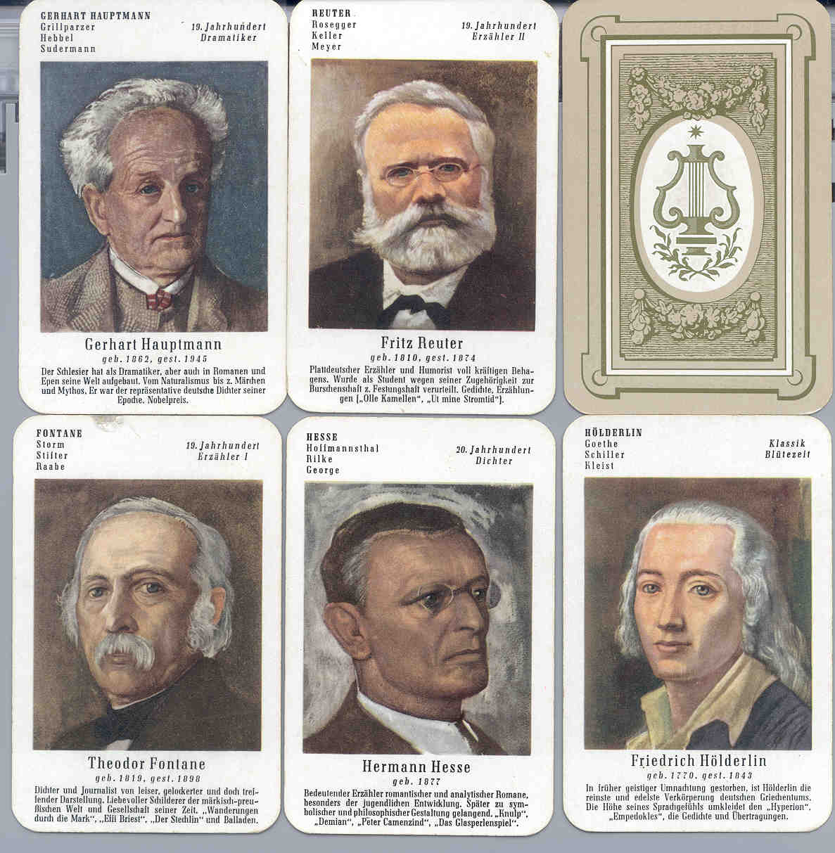 DICHTER-QUARTETT. MINIATUR-BILDNISSE VON GERHARD ULRICH. Bielefelder Spielkarten ca. 1950ff. 48 Bl.