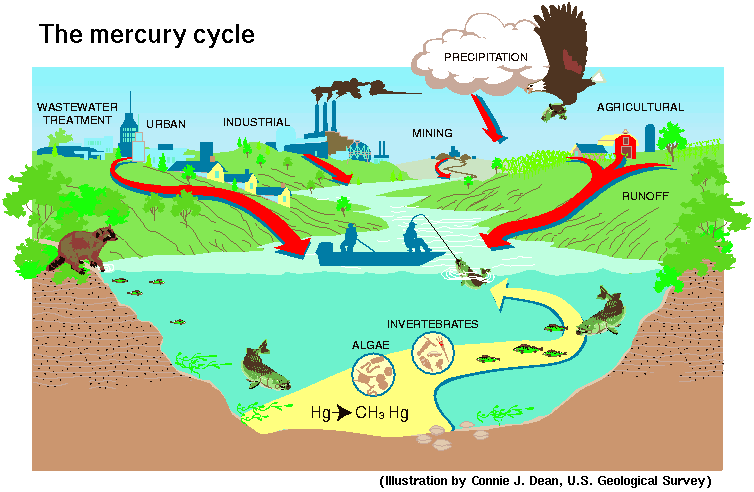 Mercury, unlike other substances, travels through the food chain. For example, if a local fisherman catches a bass in the Shenandoah River and that bass has some level of mercury in it, when the fisherman takes it home and cooks and eats it, that mercury then enters the fisherman’s system.