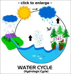 Most pollution travels naturally through the water cycle. This causes contamination to spread further downstream. Nonpoint source pollution is so dangerous because the pollutants are easily carried through the water cycle. Below is a picture depicting the flow of the water cycle: