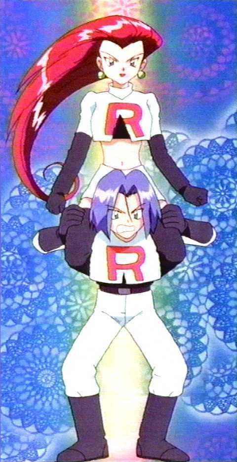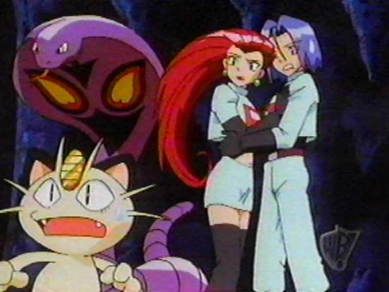 Meowth and Arbok, and look at the way the Jessie and James are holding each other!
