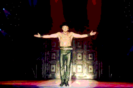 Example one, the above picture. Flatley is sporting a rather fetching "im-a-creepy-pervert" hat, Leather trousers, & studded wristbands. The last time we saw fashion like that, it was on Rob Halford from Judas Priest..