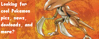 Feb 19:Want to link to us? We now offer that! Click here! Also, vote for us in Charizard's top 50 Pokemon Sites. Be sure to check out all the stuff near the bottom of the page. I must say we've gone a long way since we first started. Next I hope to work on game cheats. Oh yeah, the message board is working! Please click on the ads. One click helps this site!