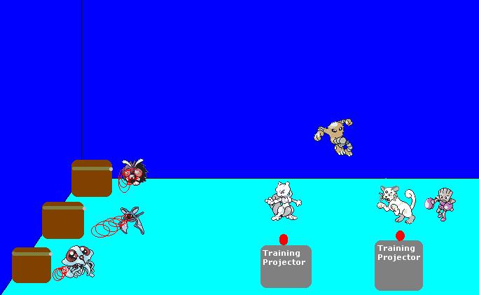 A game where your pokemon use their attacks to see which box holds something and what they hold, if they can tell what it is they keep it(It can be anything from calcium to a TM) This room also has two training machines.