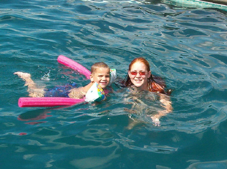 Well, this is me doing the other thing that I do, which is swimming. Here I'm goofing off with my second cousin Marc, who is 4. This picture was taken on the day that he first learned how to swim. He's such a cutie!