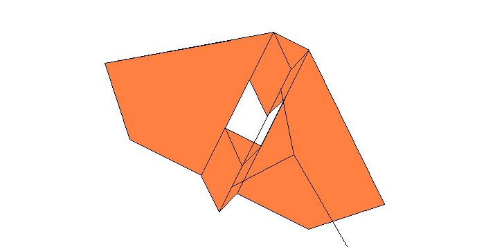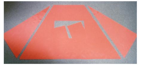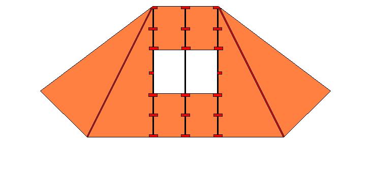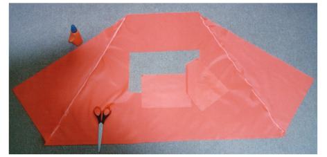 Yukarıdaki çizimde gördüğünüz gibi , kağıdınızın sağındaki ve solundaki üçgenleri ve ortadaki dikdörtgeni keserek asagıdaki parçaları elde edin.