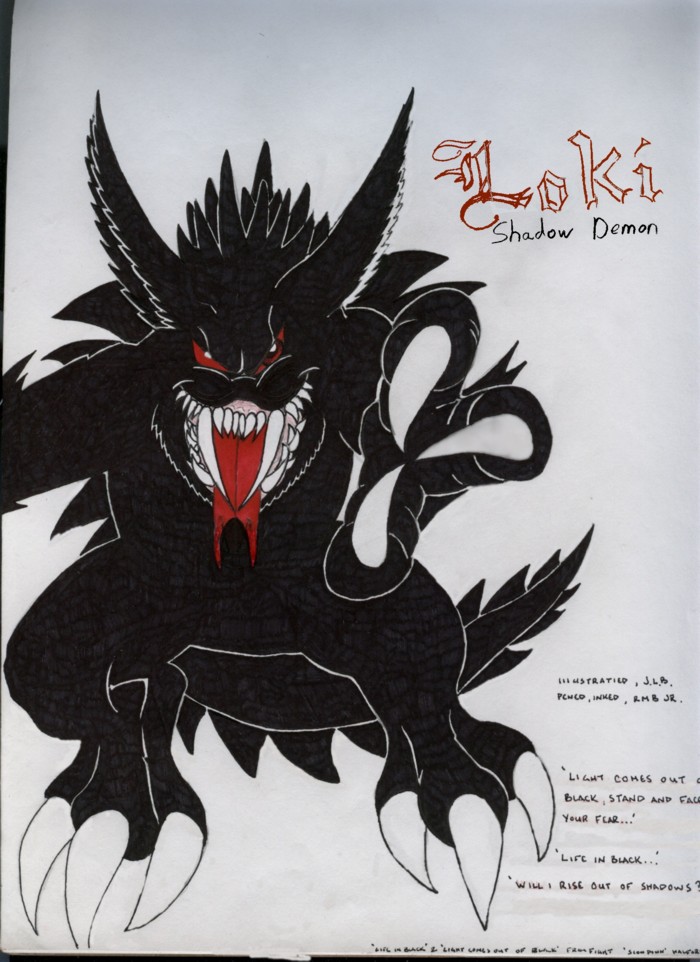 Well I created this section to the Dark Gengar that has caught my imagination and flared it lately. I've been struck with this need to share my character as strongly as I had when I first wrote Emerald. Like Draco, Loki has a fixed place in my mind. I decided to do at least one solo fic for Loki once the Amber Conspiracies are finished. Well, on to the gallery. I have selected some of my favorite sketches and pics of Loki for this section.