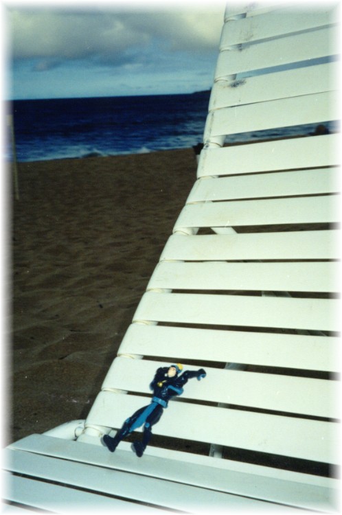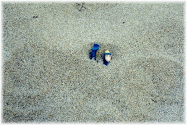 Ninja Man was teasing me. He had gone down to the water and was flicking water on me. So I buried him in the sand. That'll teach him to tease someone bigger than him!!!!!