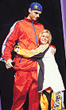 Aaron gives nick a hug up onstage.