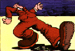 Chester's shirt: "Truckin' on down the line" Underground cartoonist Howard Crumb's big-footed characters (right) were seen on many t-shirts and bumper stickers in the early/mid-1970's.