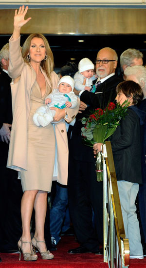 A foto ao ao lado ilustra o momento em que Celine Dion acompanhada pelo marido, René Angélil, pelo filho mais velho de 10 anos, René-Charles, e pelos gémeos Nelson e Eddy, entraram no Hotel Ceasars Palace, onde residirão até que terminem as obras de renovação da sua casa de Las Vegas. Menos de 4 meses depois de ter dado à luz os gémeos Nelson e Eddy, a cantora apresenta-se em grande forma.