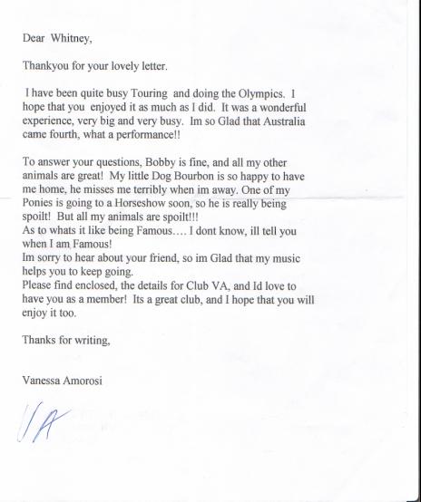 I recieved from Vanessa and alsoa message that was posted in the guestbook