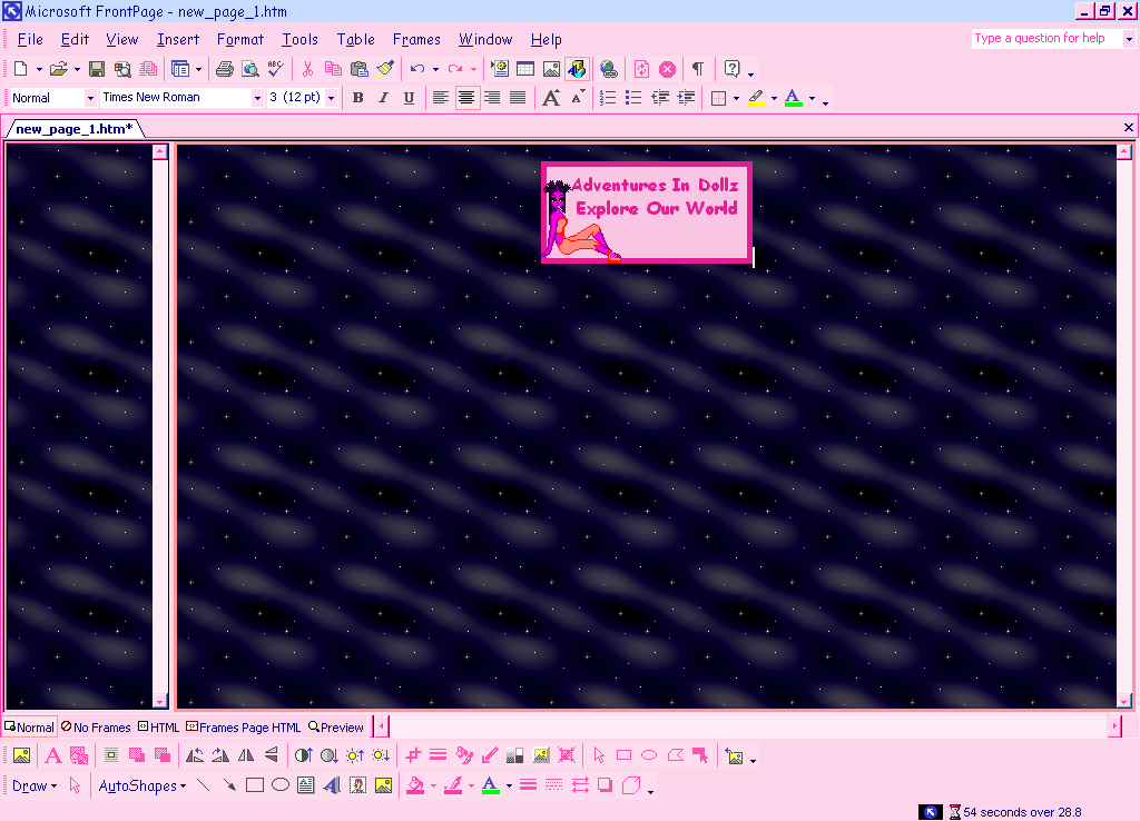 Note: when saving you page be sure to pay attention to which frames are being saved so you name them properly. When using two or more frames you must save each page separately under different names and then save the pages collectively under one name. Example: Side from is named menu.htm Main from is named main.htm Both frames collectively are names NewSite.htm. When you open NewSite.htm you will see both frames. Htm will automatically be after your page name, you do not have to write it or you page tag will look like this NewSite.htm.htm