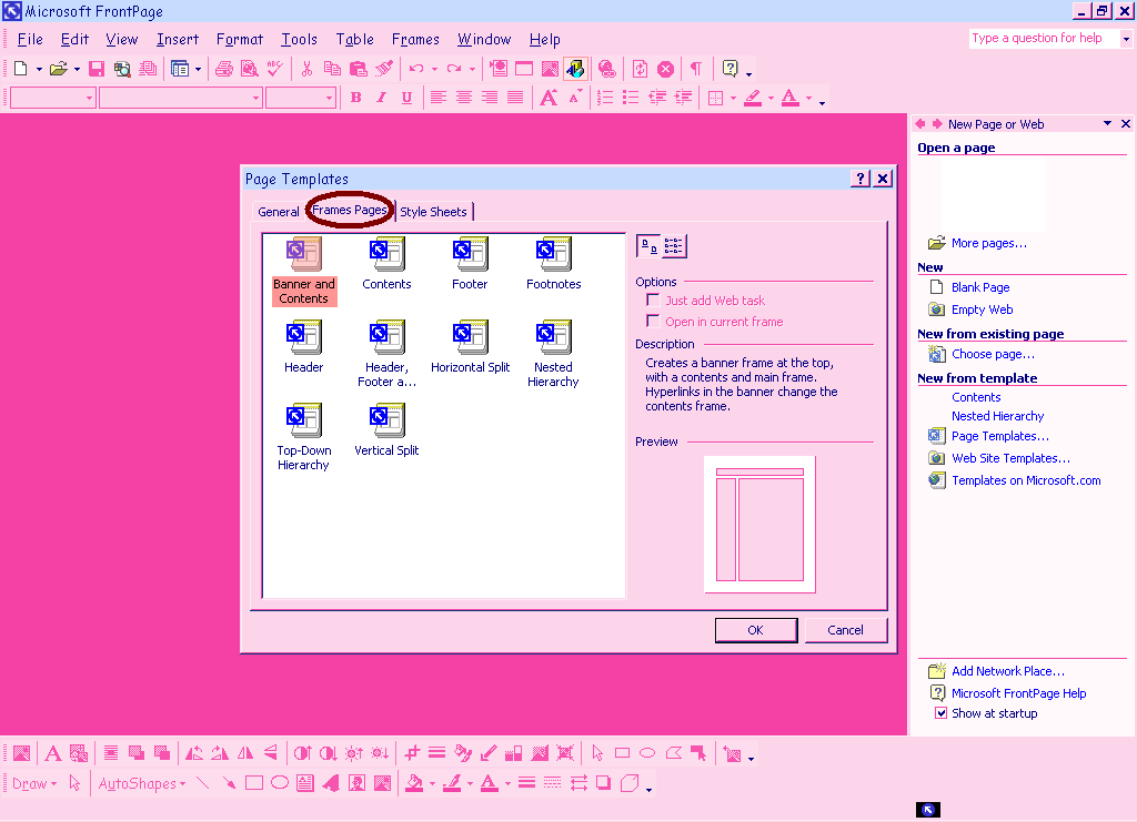 Making a site with frames using FrontPage 2003