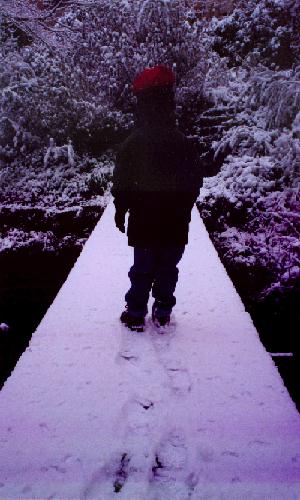 Alex on the snow-covered Big Turtle Creek bridge--January 2001. Big Turtle Creek in the snow! Clyde, Alex & Rudy The BTC Ninja Laura, Alex & Rudy Little Alex The Big Turtle Creek Family