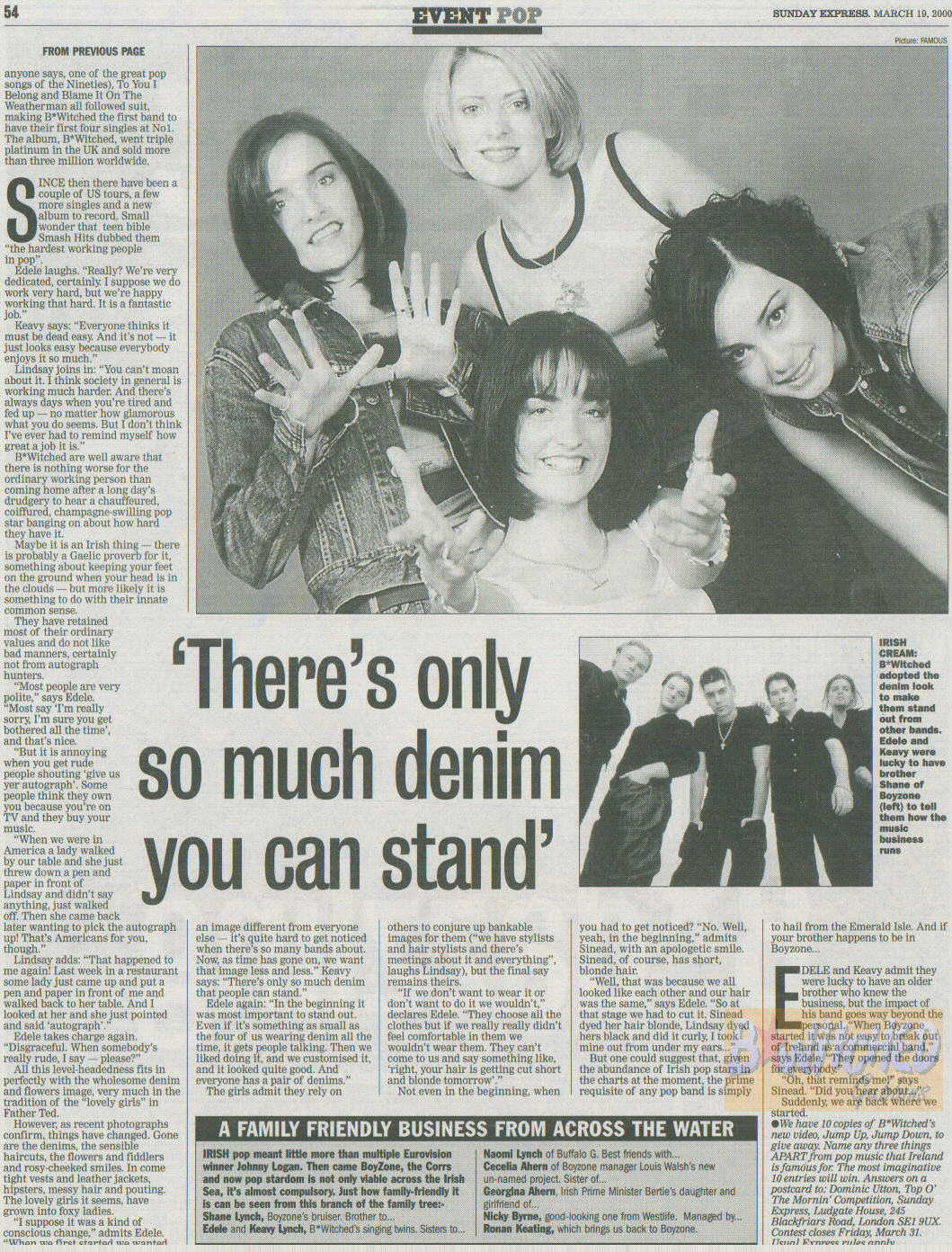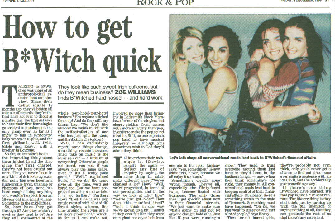 The named newspapers retain the copyright on the stories and photos. I am acting as a news service for all the fans around the world who wish to have uptodate info on B*Witched.