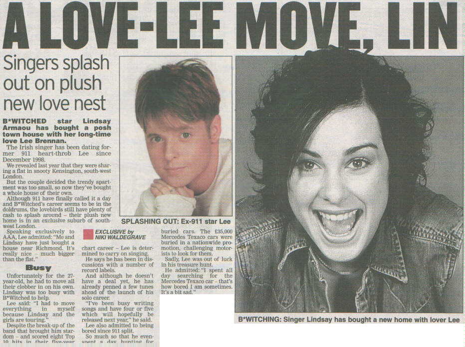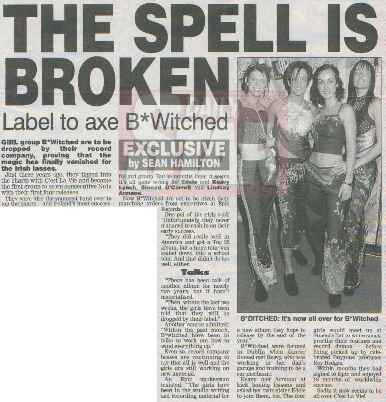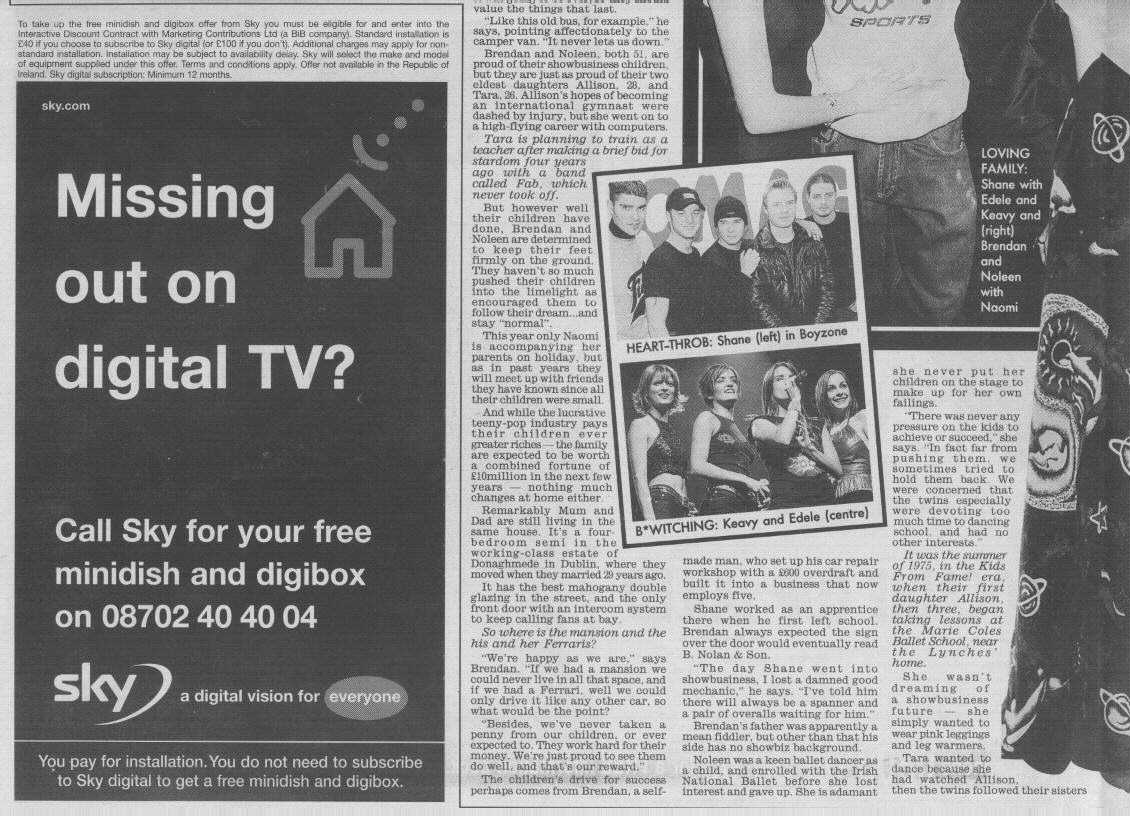 The named newspapers retain the copyright on the stories and photos. I am acting as a news service for all the fans around the world who wish to have uptodate info on B*Witched.