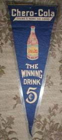 | Dad's Root Beer bottle topper @ $137.51 | Vernor's Ginger Ale menu board for $45.43 | Pepsi:Cola door push for $333.33 but reserve not met | Chero-Cola felt Pennent @ $420.00 |