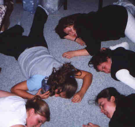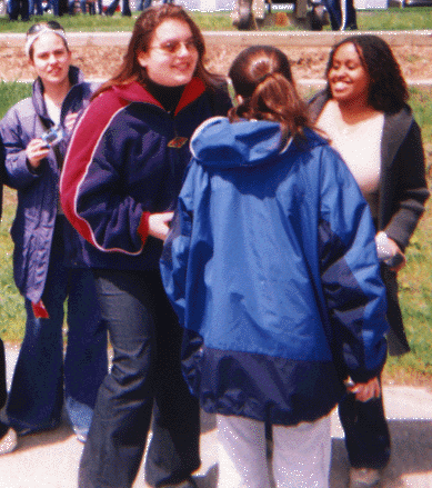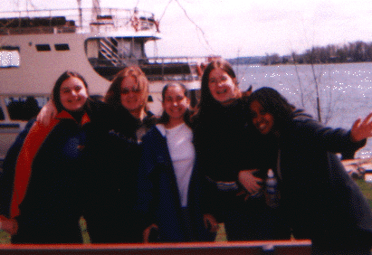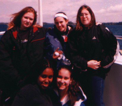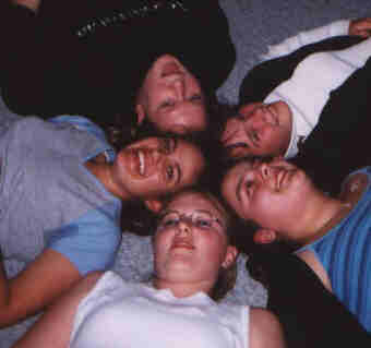 Sandra, Amber, Michelle, Crystal, and me all putting our heads together