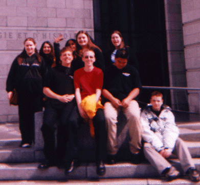 Brittany and me stopping to take a pick during the walking(bus) tour in Montreal
