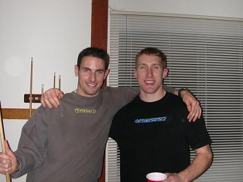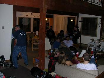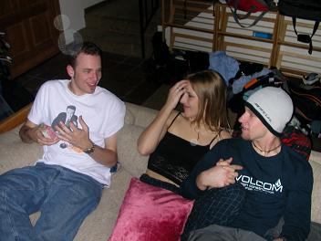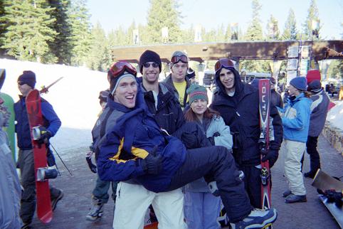 Mike getting ready to dump snow on Steve as he boards down Nick's "course of doom."