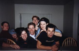 From left to Right: Jenny, some guy who wasn't invited, Lauren, and Alison
