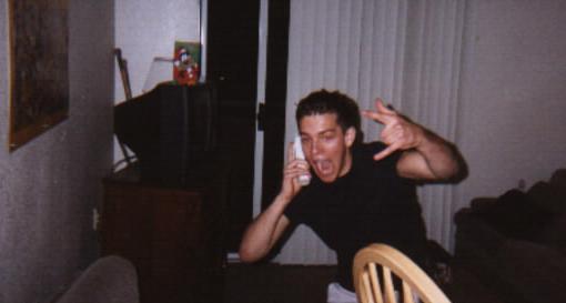 This is the roller hockey team from the 2001-2002 season, just after setting up the ring for the WWF match on campus.