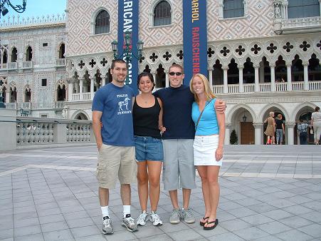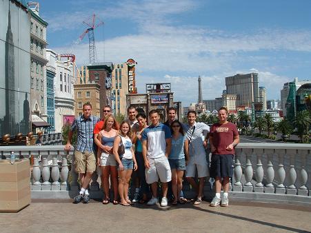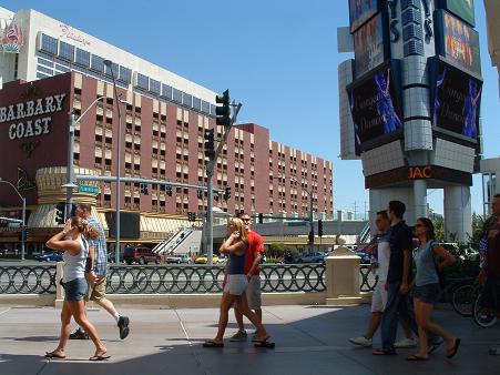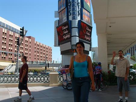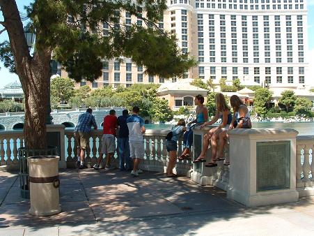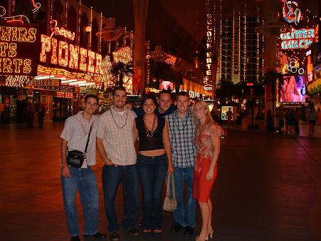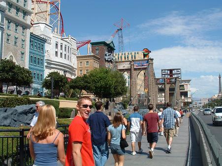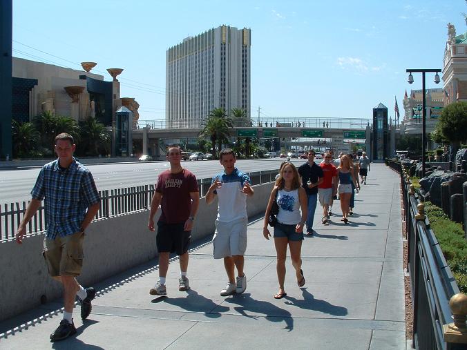 What the camera says: everyones walking down the strip... what the camera doesn't say: Justin and Chris are holding hands