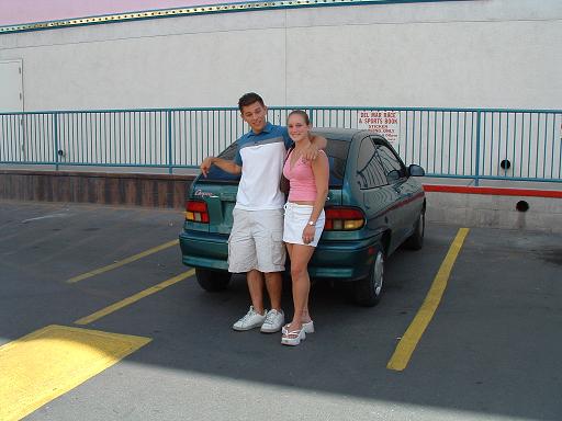 Mike and Misty taking a picture in front of a timeless background... the back of a white pickup.