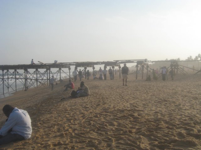 THESE PYLONS WERE INSTALLED LONG AGO WHEN THE SLAVE TRADERS CAME TO WEST AFRICA. THIS IS WHERE THEY MOORED THEIR SLAVE SHIPS. THE COASTLINE IS VERY STEEP AND DEEP ALLOWING THE SHIPS TO BE CLOSE TO THE SHORE.