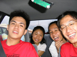 Finally the trip came to an end. 7 of us took the bus back, while Mo went to Seremban in his car with Sueh Lung, Kinz and Li Lynn to wait for us. Then after Seremban, they followed behind our bus. Lol. They wrote things like "Hi" on a piece of paper and showed us. Hehe. Kinz & Sueh Lung said the bus driver drove very recklessly. Oh well, as long as we're safe, it's ok. =)
