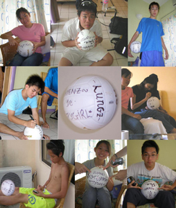 We all signed the volleyball bought by Kinz... this pic is missing 3 ppl cause not enough space... but I like this pic alot... =)