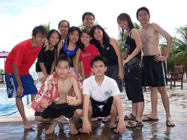 While swimming, suddenly Lynn & Shyen noticed these 3 Indian guys standing on a balcony, staring at us in the pool. So the 3 of us girls swimming were like, "Er, how now?" But our guys told us to go under the rocks (which was a huge rock by the side of the pool like a shelter, so if you go underneath it, the person on top can't see you anymore), so we did. As we were moving there, Tsing suddenly turns around to the guys and shouts, "What's your *censored* problem??" Wahlau. Lol. The Indian guys left then. So yeah, it's nice to know that our guys look out for us girls, and the girls are smart enough to notice all these things. Me? I'm just blur, so it's a good thing I have friends like this. Hehe!