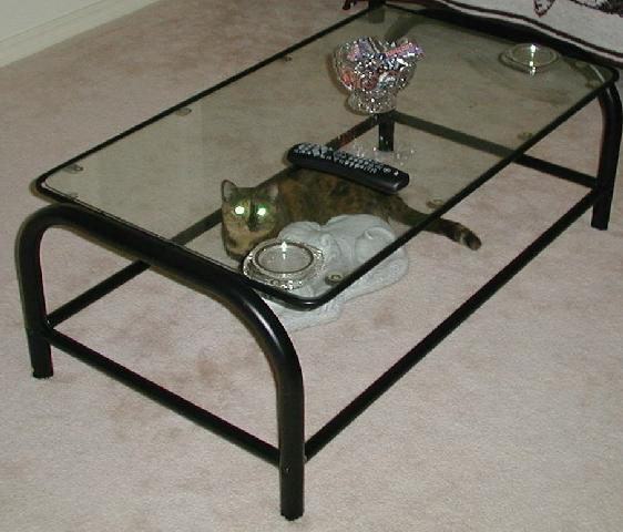 I keep trying to hide from the camera. Too bad this table has a glass top. The dog next to me seems a little too cold.