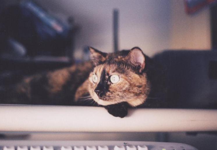 Jade lying on my desk gazing out the window |