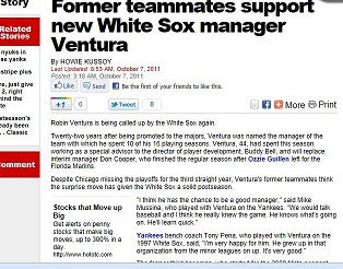 OCTOBER 8, 2011......It's been so long since I updated this page I couldnt even remember my user name or password! BUT I AM SO FREAKING EXCITED THAT ROBIN WAS HIRED AS THE NEW WHITE SOX MANAGER! So look for a fresh look to this page soon, and there will be plenty of news to come over the next few weeks. I havent been this excited about an upcoming baseball season in years.