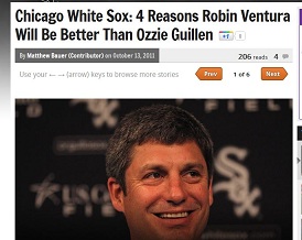 Bleacher Report has 4 Reasons Robin Ventura Will Be Better Than Ozzie and Robin Ventura: 4 Reasons Why He Can Lead The White Sox Back To The Playoffs.