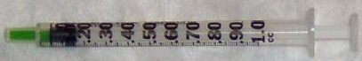 This is a 1cc (or 1 ml syringe that has 0.20 (or .20) worth of fluid drawn up into it.