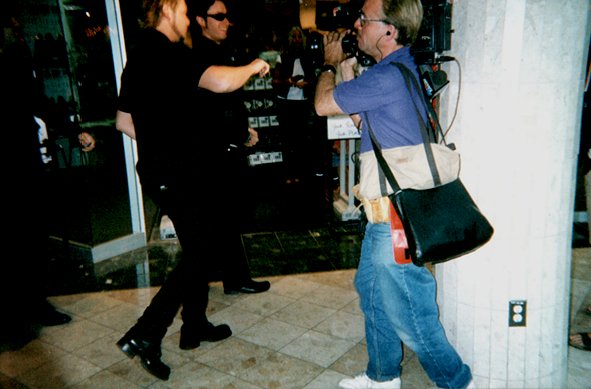 JM is saying "What?!" and Stu and I are laughing (that's my hand there...)