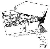- bandages (arm-sling, hand, clavicle, head, knee, ...)