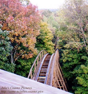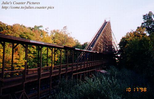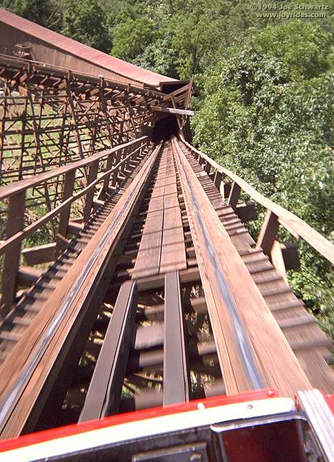 The Beast is located at the "Rivertown" section of the park. It has two lift hills, three tunnels, and a 540 degree helix which is partially tunneled. What makes The Beast even more thrilling is the 35 densely wooded acres on which it`s built. Most of the trees hide the view on The Beast, so you don`t know what thrill is in store for you next.