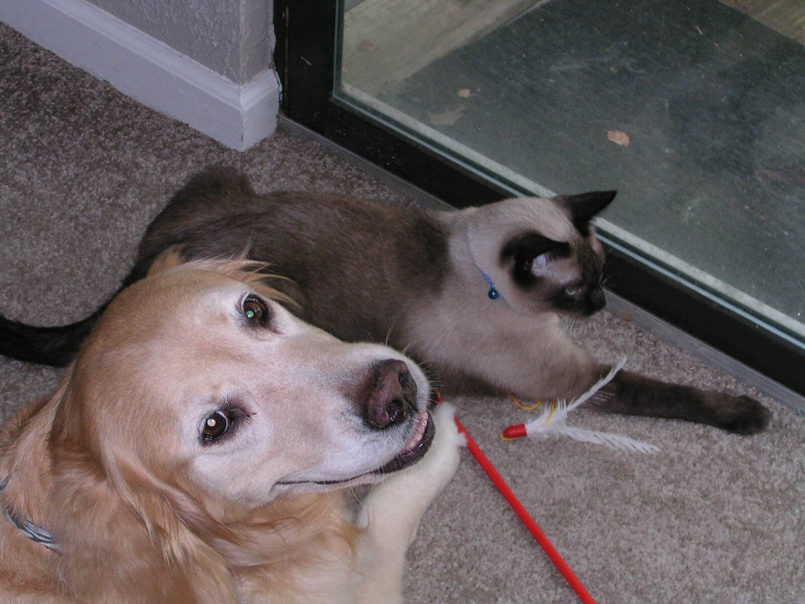 Shanghai, now known as Mao, loves to lie in front of the window with his friend, Darby.