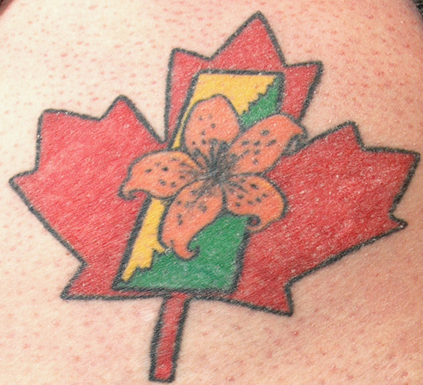 All of my tattoo's were originally drawn by my sister, Reva, the real artist in the family, although I excel at being a good canvas