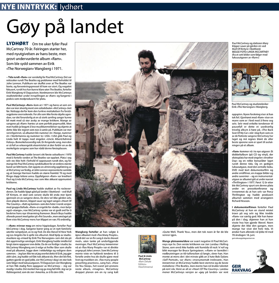 Words by Paul McCartney in connection with the 50th Anniversary of the album RAM by engineer Eirik:
