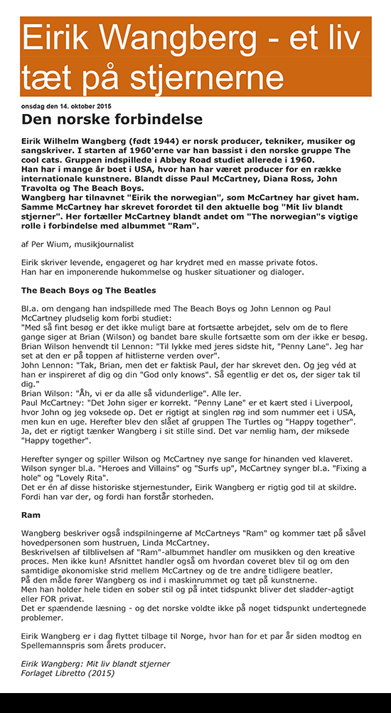 USA Podcast about Paul McCartney and RAM - Fredrik Skavlan introducing Eirik Wangberg |