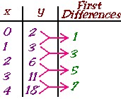 As we can see, the second difference is constant. This is important, because it tells us that this is a quadratic relationship.